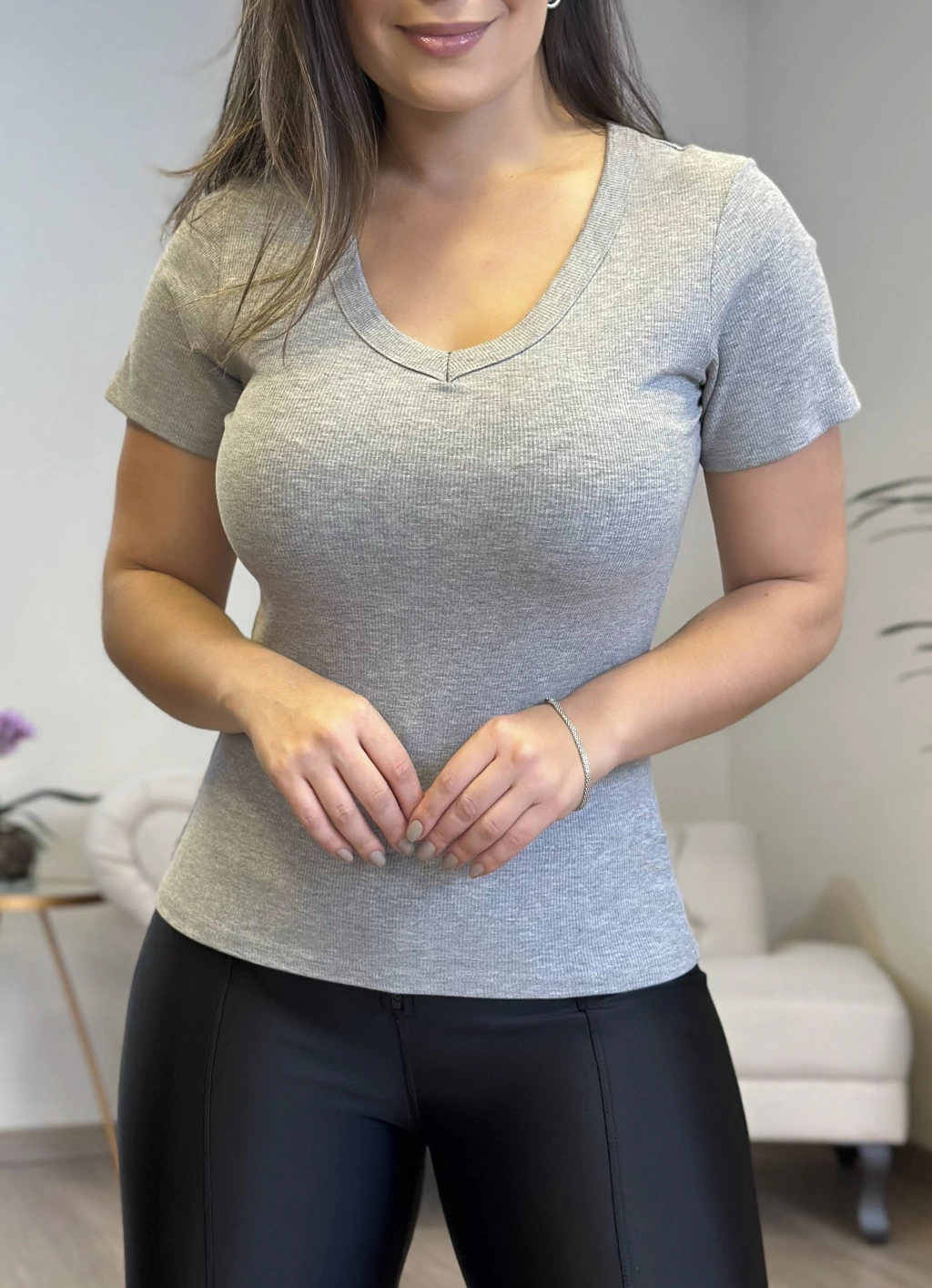 Confeccionada em tecido canelado com elastano, a Baby Look Canelada oferece toque macio e flexível para o seu dia a dia. Seu design com gola V proporciona um caimento elegante e confortável. Ideal para quem busca uma peça básica, versátil e que acompanha todos os movimentos com praticidade. Disponível em várias cores para combinar com seu estilo.