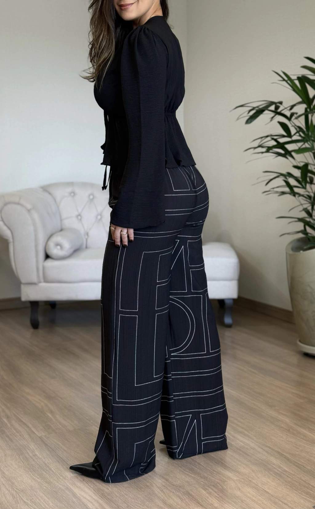 Confeccionada em tecido de viscose, esta calça pantalona oferece conforto e estilo com sua modelagem ampla e cintura alta. O cós elástico flexível garante ajuste perfeito, enquanto os bolsos laterais acrescentam funcionalidade ao design. Ideal para diversas ocasiões, combina elegância e praticidade.