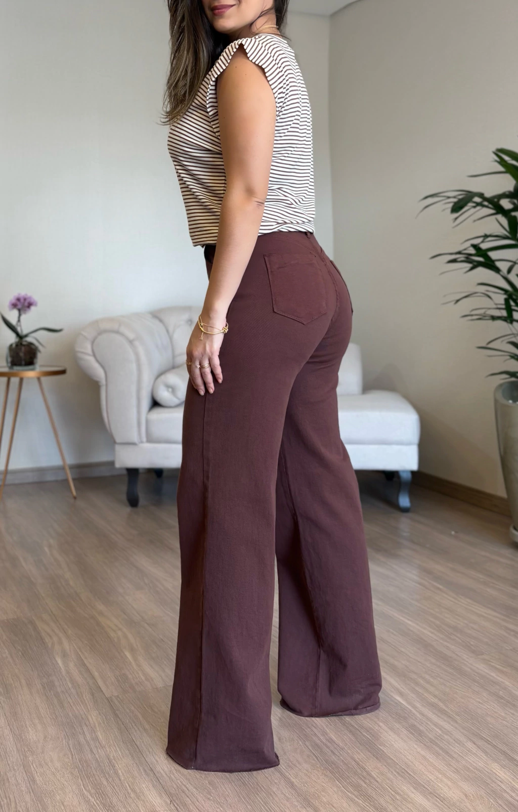 Calça Wide Leg Chocolate Confeccionada em denim off white com elastano, essa calça wide leg oferece conforto e flexibilidade. Sua modelagem com cintura média alta valoriza a silhueta, proporcionando um caimento elegante e moderno. Ideal para compor looks versáteis, do casual ao sofisticado, garantindo estilo e praticidade no seu dia a dia. Invista em uma peça chave para seu guarda-roupa com toque contemporâneo e conforto excepcional.