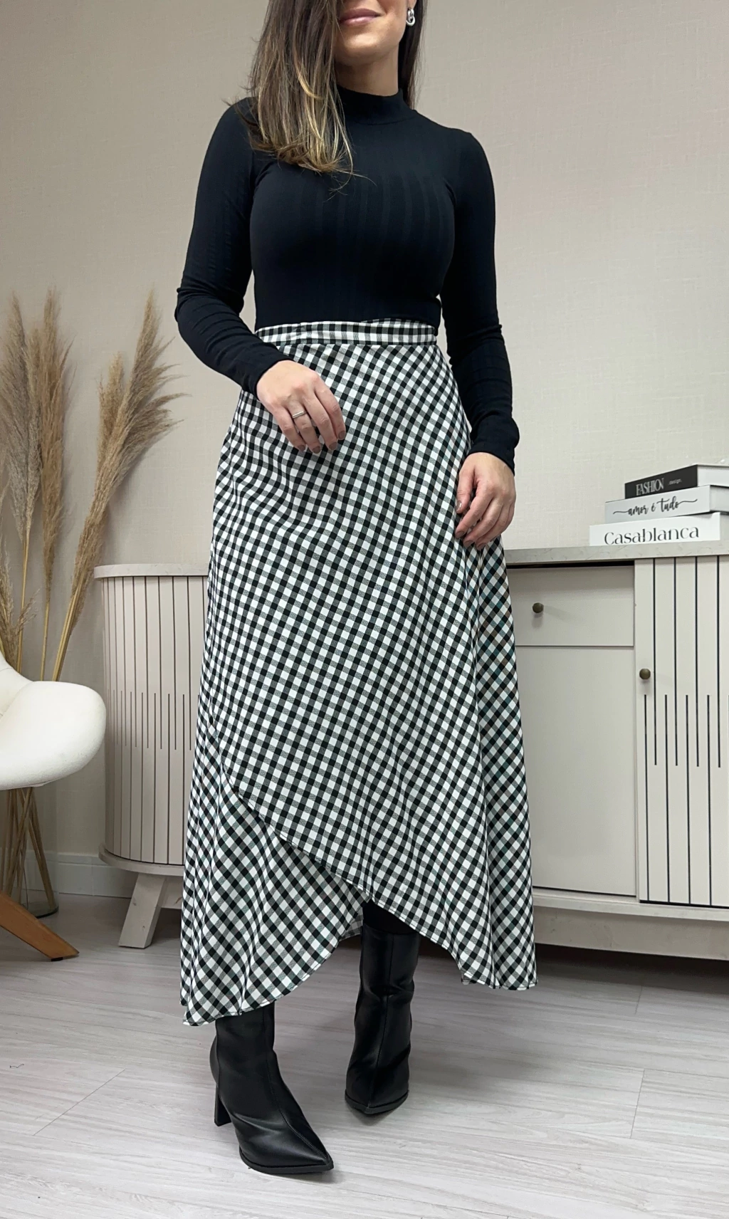 Descrição Geral: A Saia Envelope é ideal para quem busca conforto e elegância. Seu tecido leve e fluido proporciona um caimento perfeito, enquanto a amarração na cintura garante um ajuste personalizado. Versátil, esta saia é perfeita para diversas ocasiões, do dia a dia a eventos mais formais.