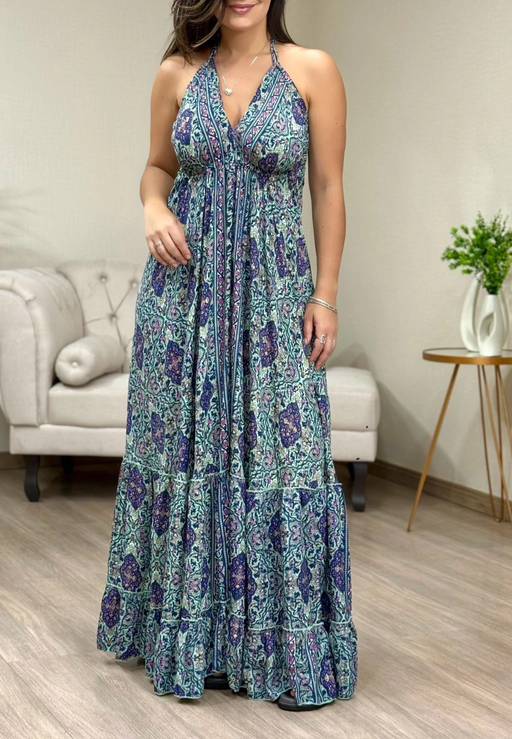 Descubra o encanto do Vestido Bali, confeccionado em crepe seda de toque leve, fresco e fluido. Com alças para ajuste do busto, permitindo diferentes opções de amarração nas costas com detalhes de ponteiras tipo tassel no acabamento dos cordões. A costa lindamente cavada traz um charme extra à peça.