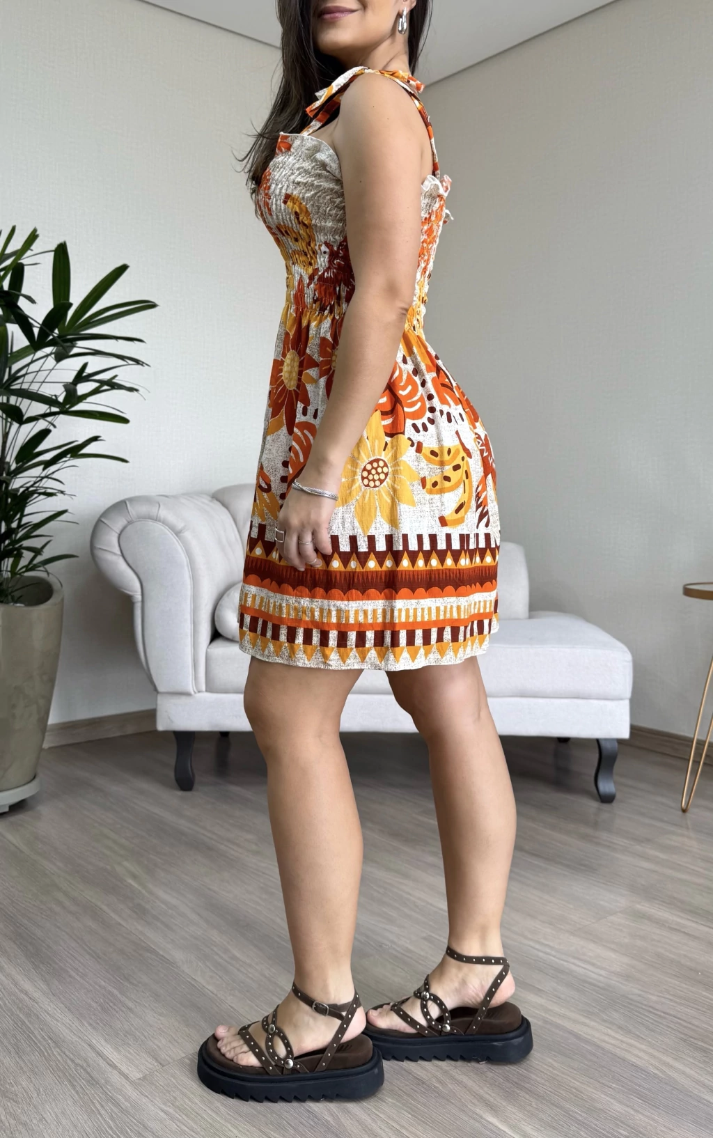 Este vestido traz a leveza da viscose combinada com uma linda estampa havaiana, perfeita para dias quentes e ocasiões descontraídas. Possui alcinhas ajustáveis para amarração no ombro, garantindo conforto e ajuste personalizado. O busto em lastex proporciona melhor caimento, enquanto o comprimento acima do joelho valoriza a silhueta.