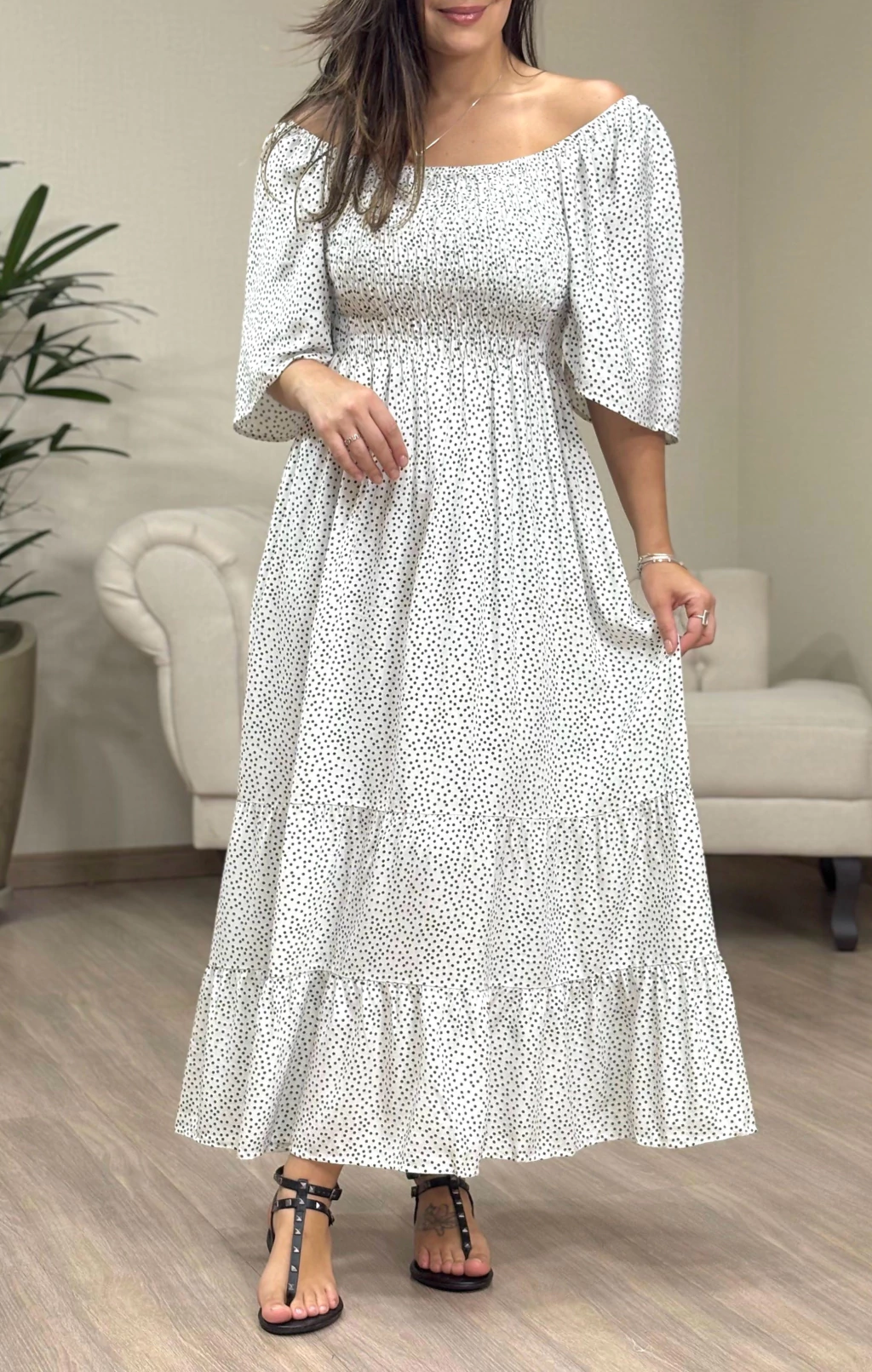 Vestido Poá - Marsala é a escolha perfeita para quem busca conforto e estilo. Produzido em tecido de viscose, o vestido possui decote em elástico que permite uso opcional ombro a ombro ou com os ombros cobertos. O busto em lastex flexível garante ajuste confortável, enquanto a modelagem soltinha e o comprimento midi valorizam a silhueta. Ideal para diversas ocasiões, combine com acessórios para um look versátil e elegante.
